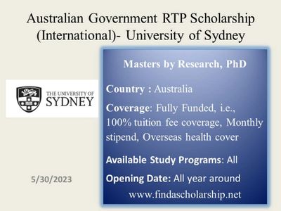 For more information: https://www.sydney.edu.au/scholarships/e/australian-government-rtp-scholarship-international.html